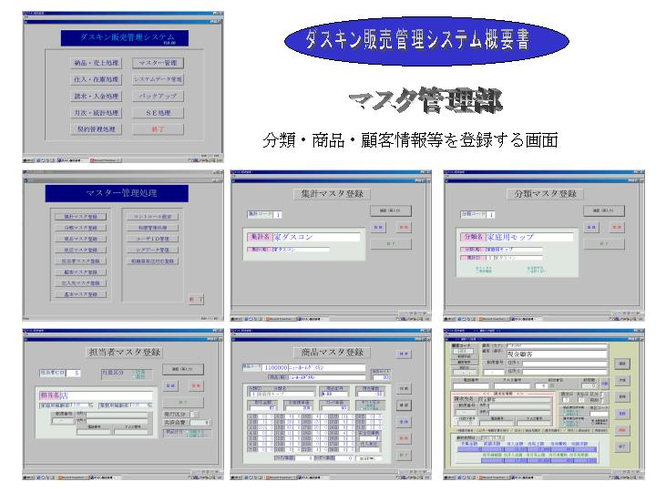 施設管理システム・JA青色申告会システム・漁協売上精算システム・プロパンガス請求システム・車両管理システム・ダスキン管理システム・日程管理システム・各種販売管理ステム …等々